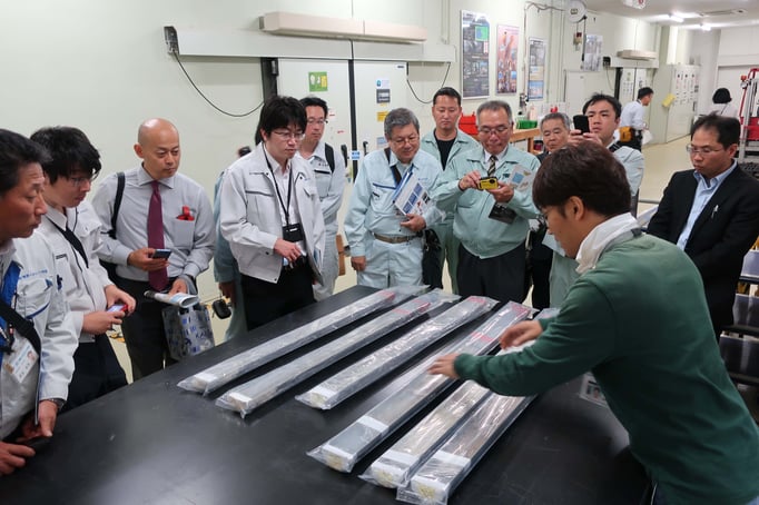 高知大学海洋コア総合研究センターでは、地球掘削科学を中心とした地球惑星科学関連の研究機関です。調査船ちきゅう等で採取した海底コアの分析や保管をしており、高度な分析装置群があります。分析装置については一般の利用も可能であり、大学の計らいでコンクリートに対応が可能と思われる試験装置群の見学と今後の有効利用についての懇話会が開催されました。